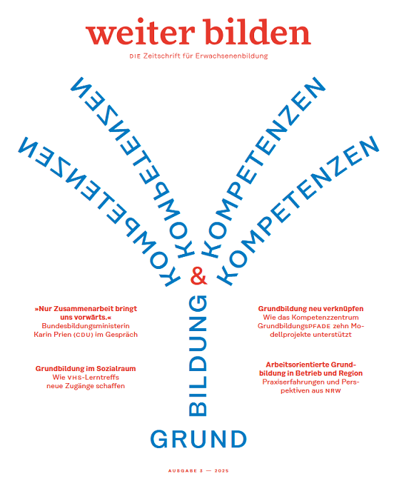 Die aktuelle Ausgabe der Fachzeitschrift „weiter bilden“ des Deutschen Instituts für Erwachsenenbildung widmet sich umfassend dem Thema Grundbildung und Grundkompetenzen. In der Ausgabe 3/2025 beleuchten verschiedene Beiträge die aktuelle Situation der Grundbildung in Deutschland.
