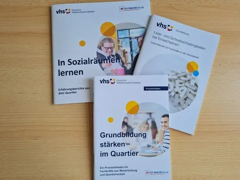 Wenn Grundbildungsangebote im Sozialraum umgesetzt oder weiterentwickelt werden sollen, dann bietet der Deutsche Volkshochschul-Verband (DVV) das passende Unterstützungsmaterial: Das kostenfreie Materialpaket „Grundbildung im Sozialraum“ bündelt praxisnahe Leitfäden und inspirierende Beispiele erfolgreicher Projekte. Damit sind Fachkräfte aus Weiterbildung und Quartiersarbeit bestens vorbereitet, eigene Ideen in ihrem Quartier umzusetzen.